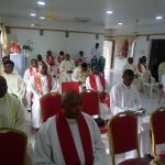 May 15, the third day, the Assembly was honoured to have as visitor the Bishop Emeritus of Ijebu-Ode, Most Rev. Albert Fasina. He was the one that welcomed the Claretians to Ijebu-Ode diocese where our Postulancy House situates. Thus, it was with enormous nostalgia when he took time sharing with the Assembly members the beautiful ‘hi-story’ of the Claretian Missionary activities in Ijebu-Ode Diocese since 1994 when the pioneer missionaries late Frs Stephen Mbatuegwu and Peter Asuquo Ibanga berthed on Ijebu soil.